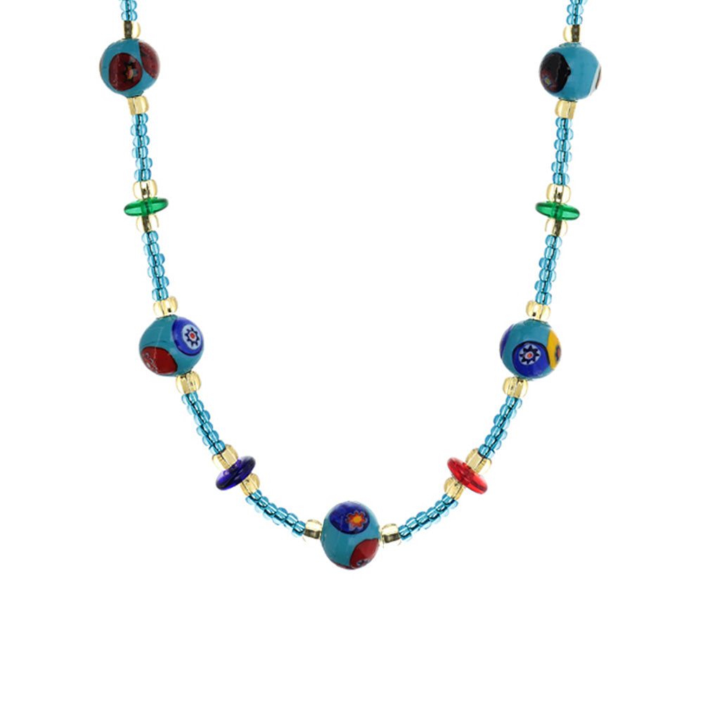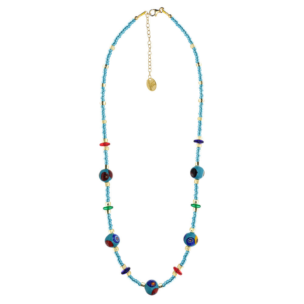 / Collana con Sfere Azzurre e Murrine in Vetro di Murano e Argento 925
