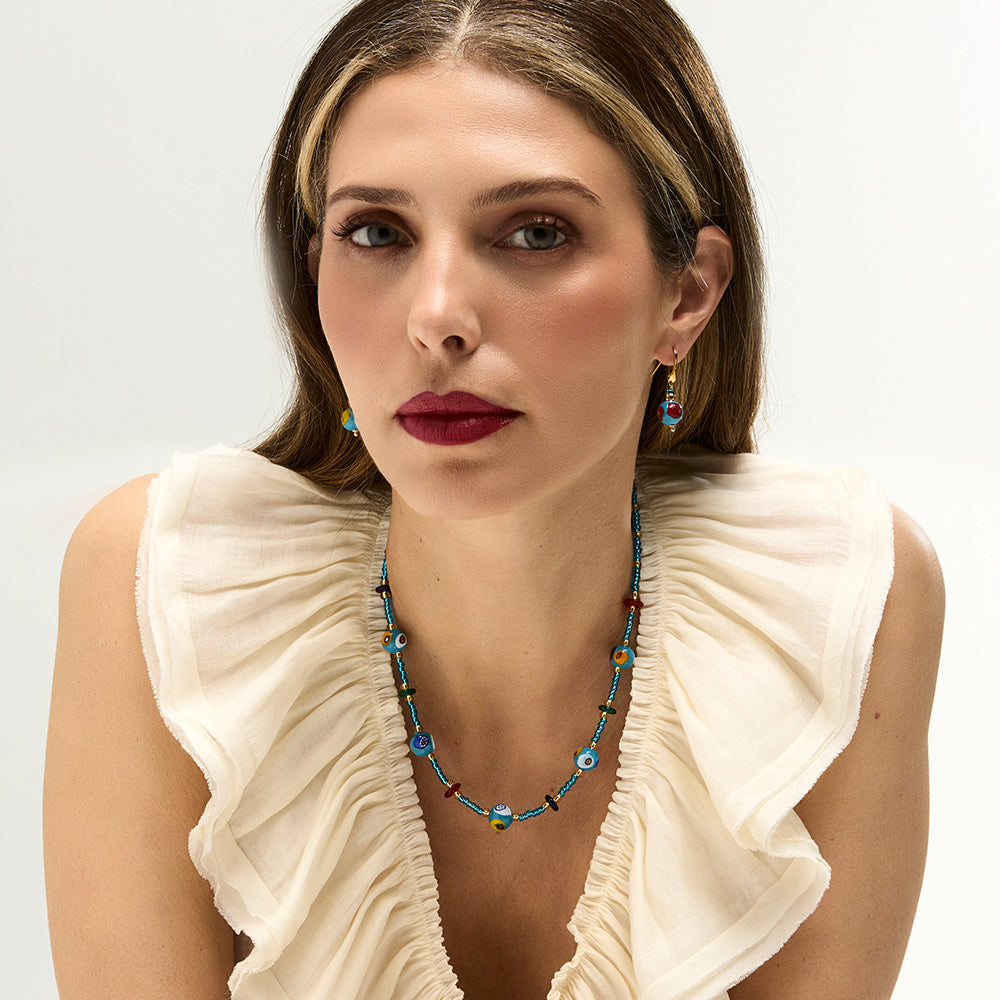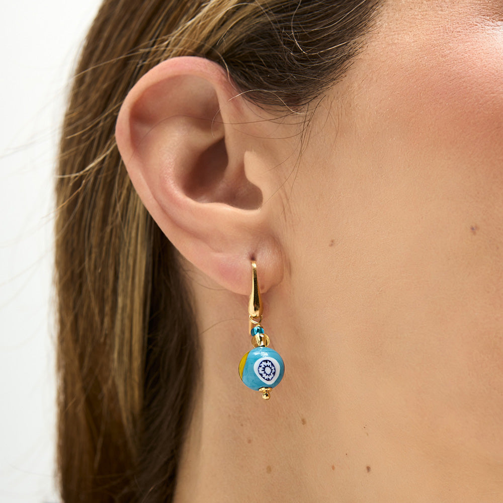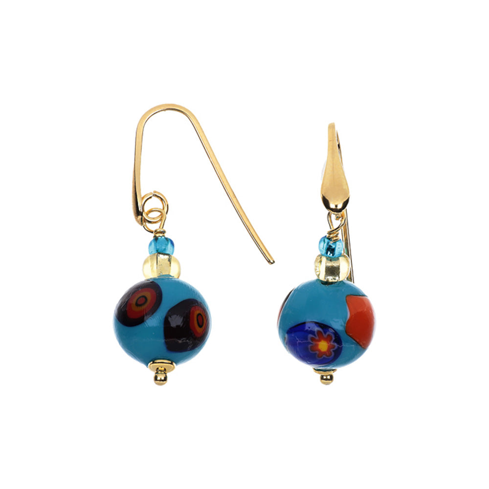 / Orecchini con Sfere Azzurre e Murrine in Vetro di Murano e Argento 925